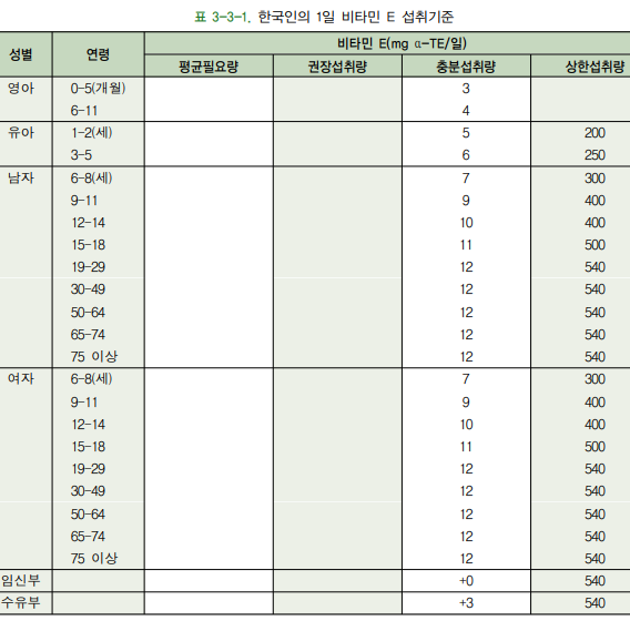 비타민e 하루 권장량 비타민e 과다 섭취 시 부작용