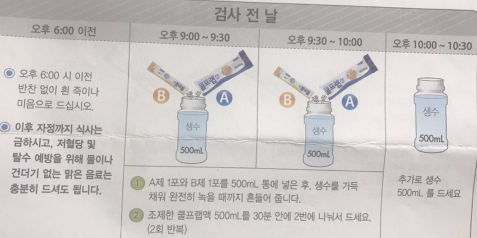 또한 대장내시경 전 약 복용 또는 마시는 복용약이 있는데 의사의 지시에 따라 복용하시면 됩니다.