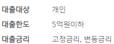 대출금리는 최저 3.64% ~ 5.29%이며 고정금리 / 변동금리로 아래와 같습니다.