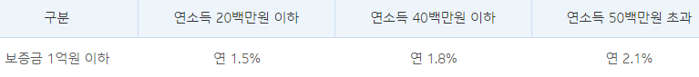 - 중소기업취업청년의 경우 외벌이가구 또는 단독세대주인 경우 연소득 3천5백만원 이하까지 가능
