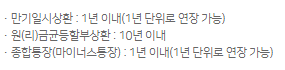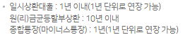종합통장대출 :1년(1년 단위로 연장 가능)