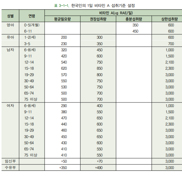 비타민 a 하루 권장량