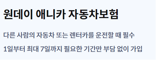 1.하나손해보험 원데이 자동차보험