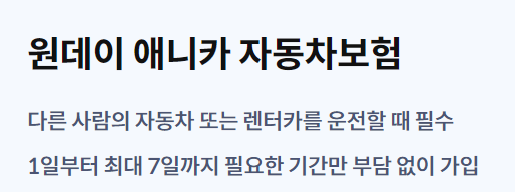 원데이 자동차보험 가입절차 및 보험료 저렴한 곳 TOP2