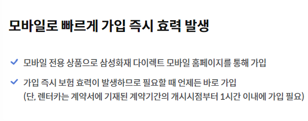 삼성화재 원데이 자동차보험 기타사항 및 가입방법