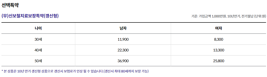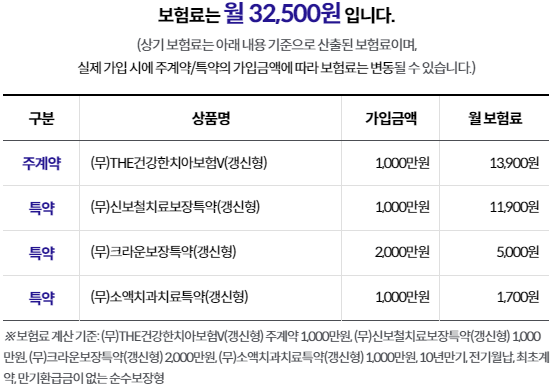 나이 30세 남자기준 보험료는 위와 같습니다.