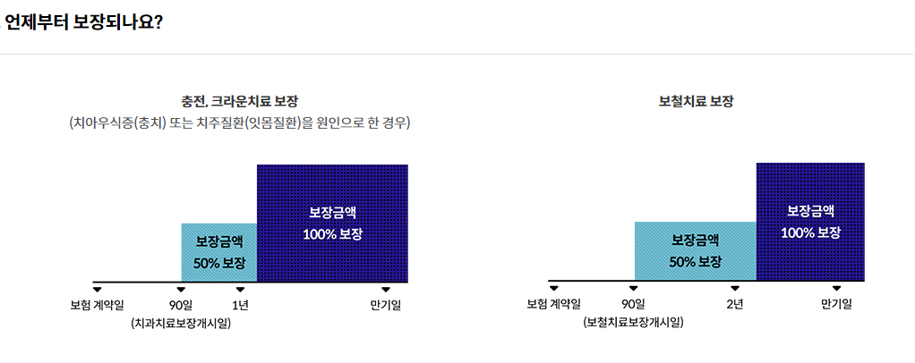 - 치과치료보장개시일은 계약일로부터 그 날을 포함하여 90일이 지난 날의 다음날로 합니다.