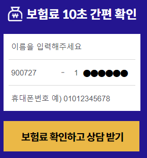일므 생년월일, 휴대폰 번호를 입력하고 '보험료 확인하고 상담 받기'를 클릭합니다.
