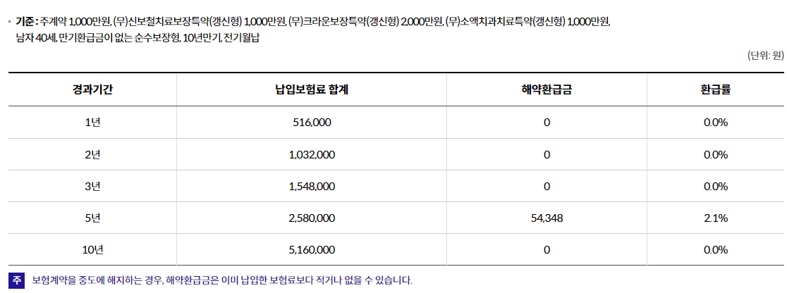 (무)신보철치료보장특약(갱신형) 1,000만원 가입 기준, 가입후 91일부터 보장