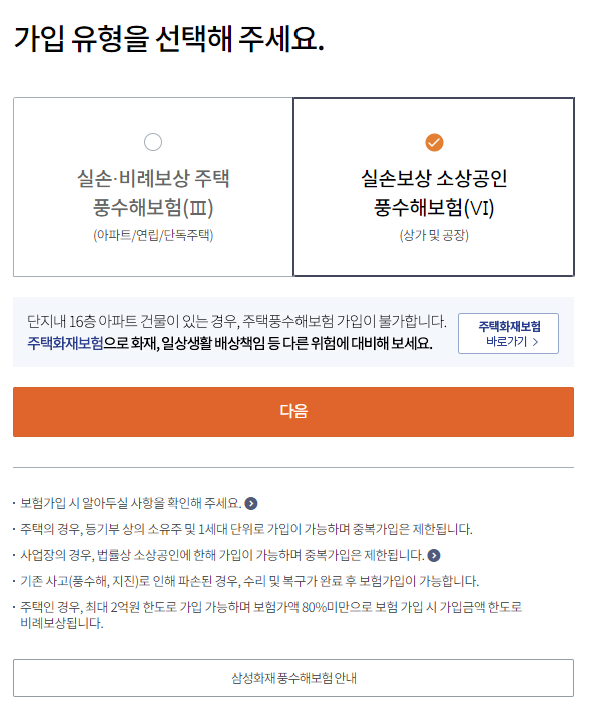 삼성화재 소상공인 풍수해보험 보장내용 혜택 보험료 조회 알아보기