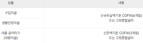 금리는 상품에 따라 기준금리 선택이 달라지며 다음과 같습니다.