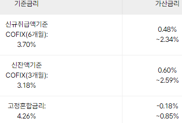 | 신잔액기준 COFIX(3개월) |