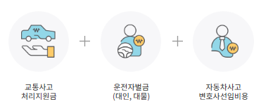 - 교통사고 처리지원금, 운전자 벌금(대인/대물), 자동차사고 변호사선임비용 보장