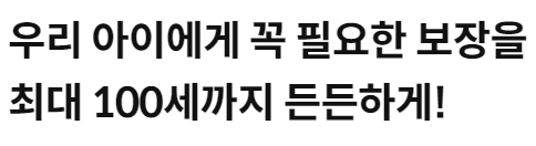 - 자주 다치는 우리아이 흉터 치료! 상해흉터복원(성형)수술비로 든든하게 보장보험기간 중 아이가 아파도 20/30년마다 자동갱신으로 최대 100세까지 보장!