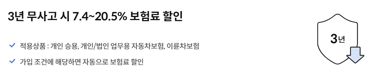- 무사고 기간은 가입한 보험사와 상관없이 적용됩니다.(예: A 보험사 무사고 1년 + B 보험사 무사고 2년 = 무사고 3년)