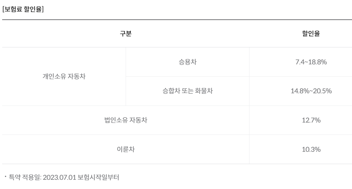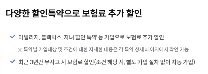 - 자동차를 2대 이상 보유한 경우, 해당 자동차가 무사고인 경우에만 할인이 적용됩니다.