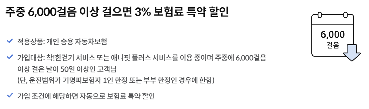 - 애니핏 착한걷기 할인 특약은 긴급출동서비스와 특약 보험료를 제외한 보험료에 적용됩니다.
