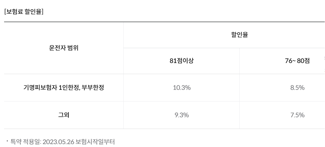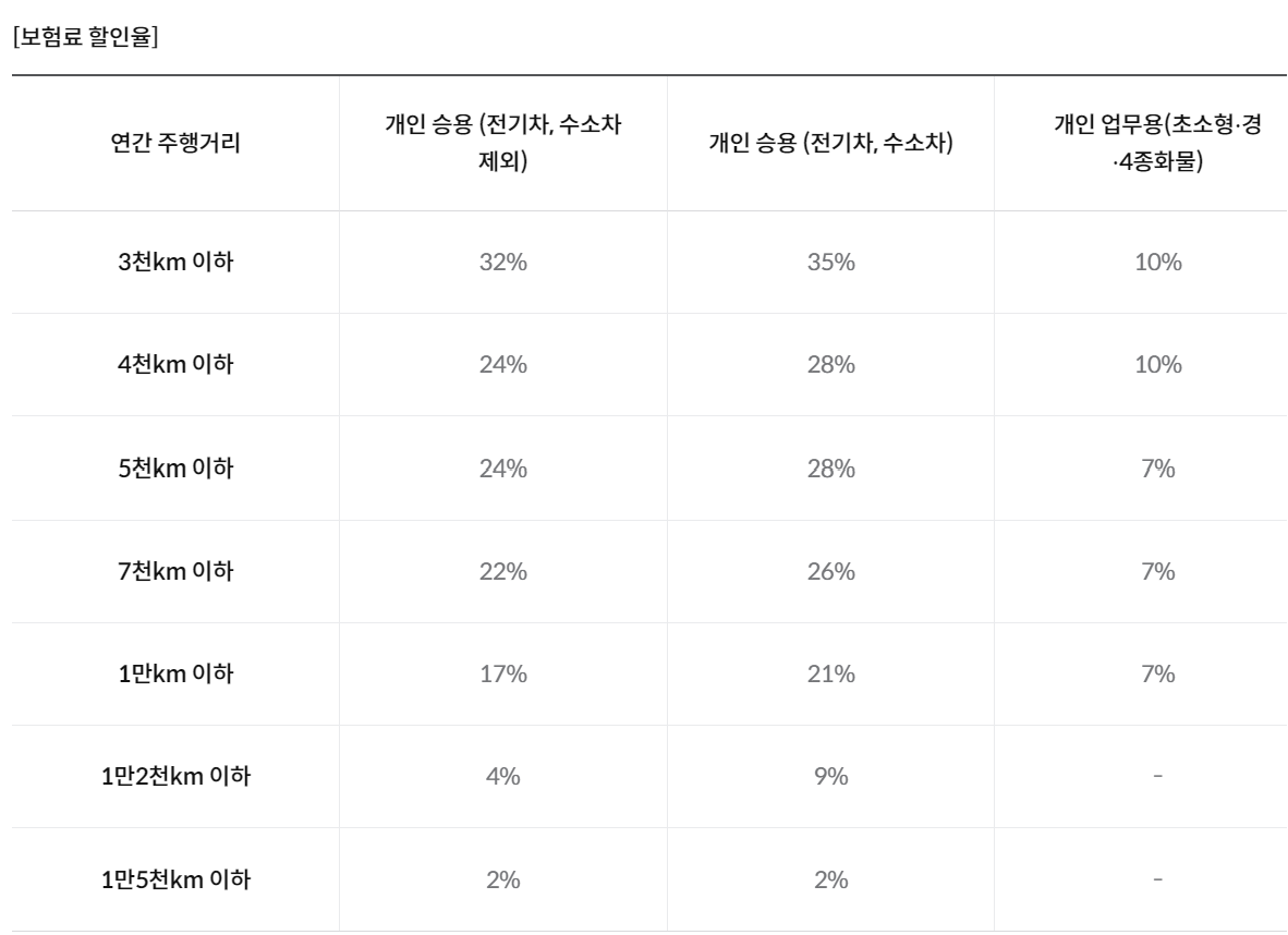 - 마일리지 할인 특약은 공동인수 등 청약 개별 사항에 따라 차이가 있을 수 있습니다.