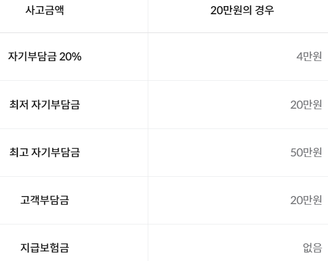 - 자기부담금은 자기차량손해액의 20%, 30% 중 선택하여 가입합니다.