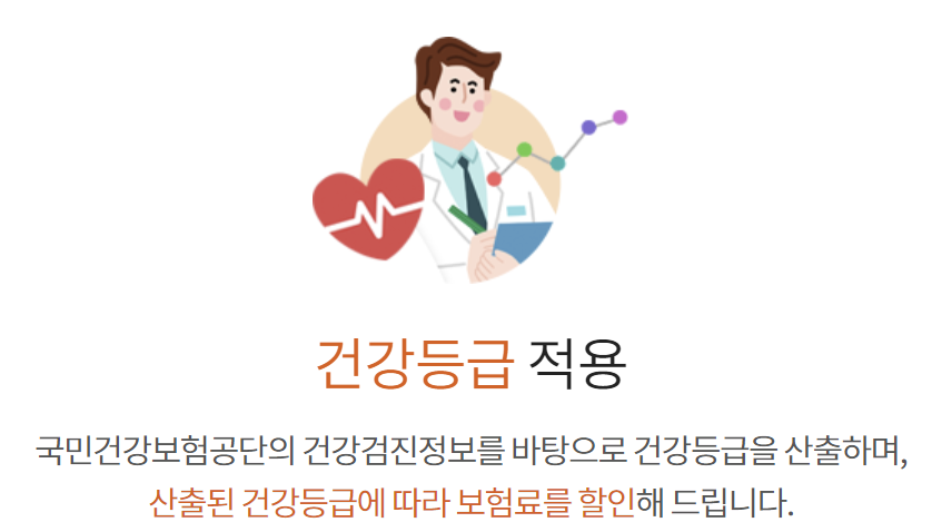 건강등급이 높아지면 보험료를 인하해 드리고 건강등급이 낮아지더라도 기존 보험료를 유지해 드립니다.