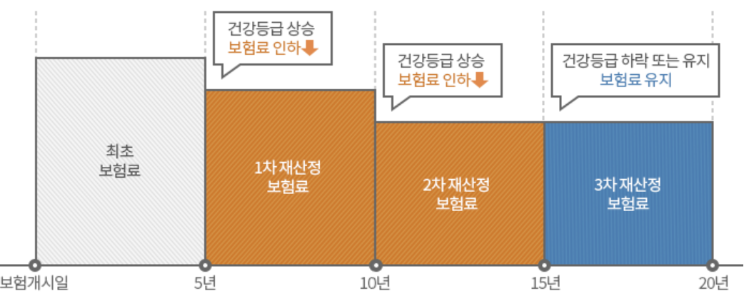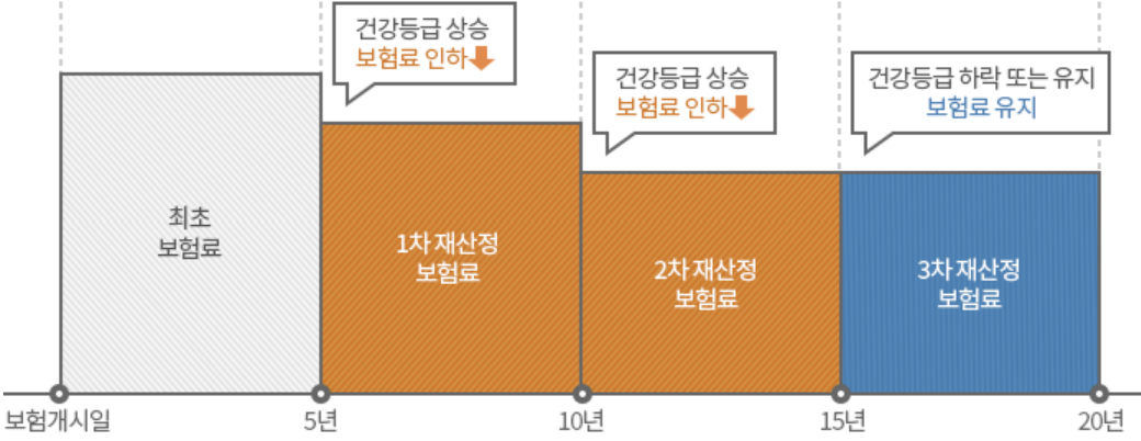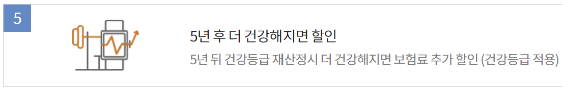 - 매5년마다 건강검진정보를 제출하여 건강등급을 재 산정합니다.