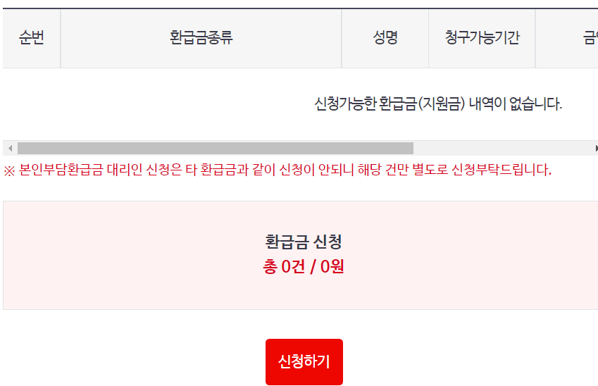 환급금이 조회되면 신청하기를 눌러 신청하시면 됩니다.