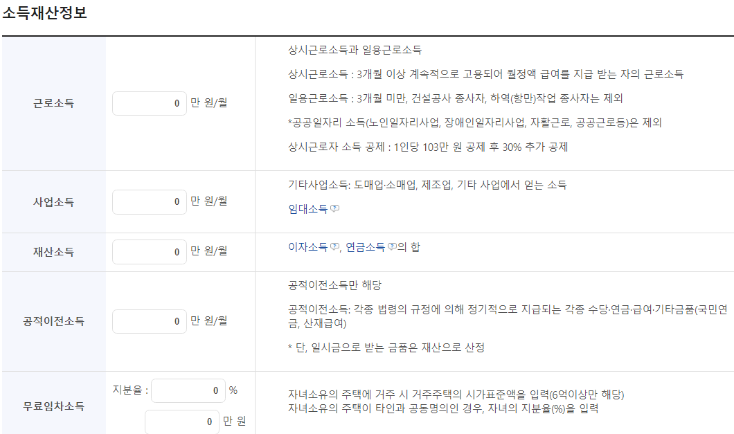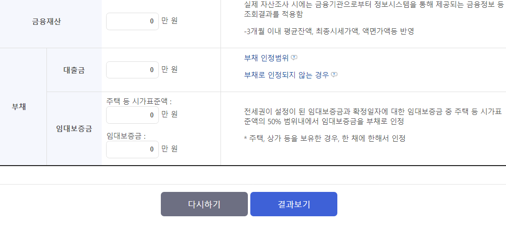 위 사진들의 정보를 입력한 후 결과보기를 클릭하면 자신의 소득 분위를 알 수 있습니다.