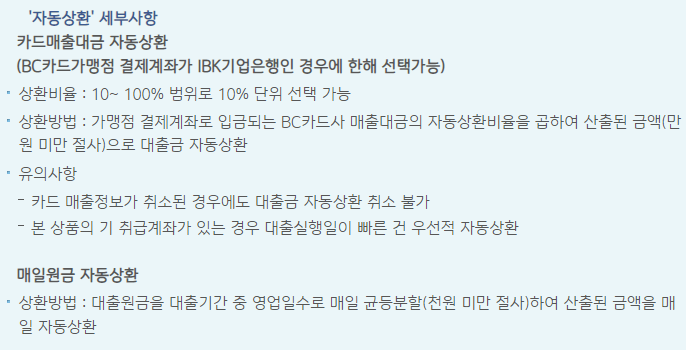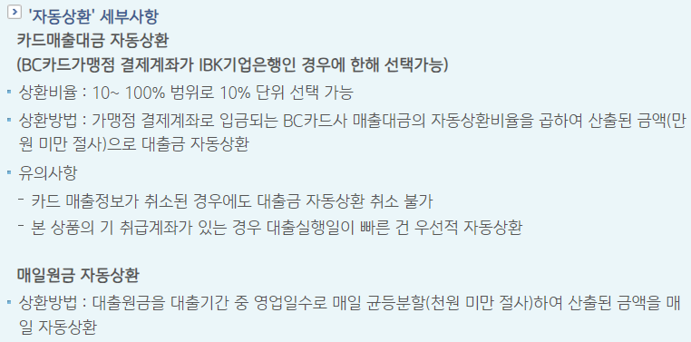 기업은행 개인사업자대출 기타사항