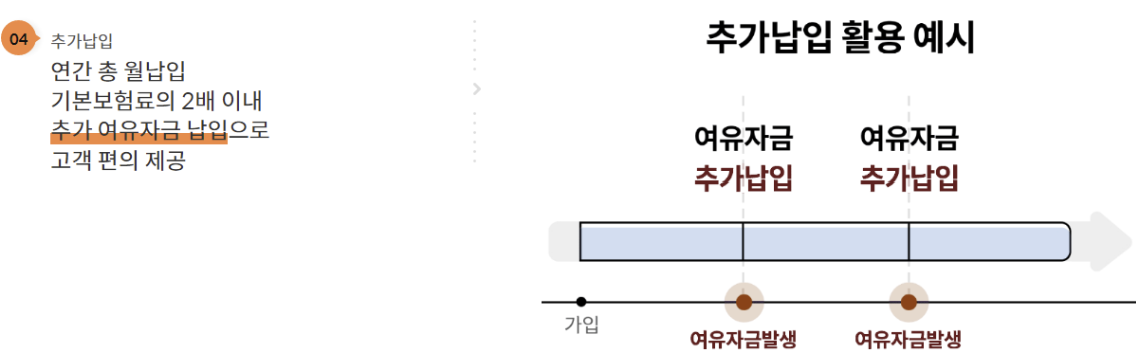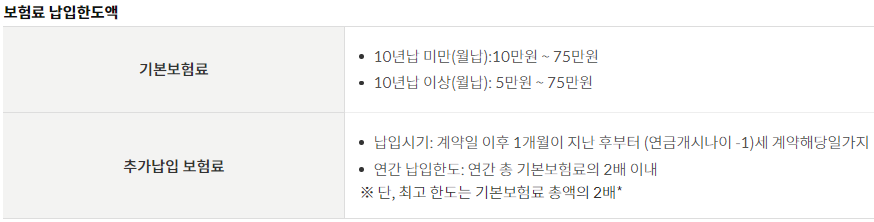 - 기본보험료 총액: 월납 기본보험료 X 12 X 월납 기본보험료 납입기간