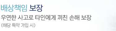 여행도중에 생긴 우연한 사고로 인하여 제3자에게 배상책임을 부담함으로써 입은 아래의 손해를 보상/자기부담금 1만원