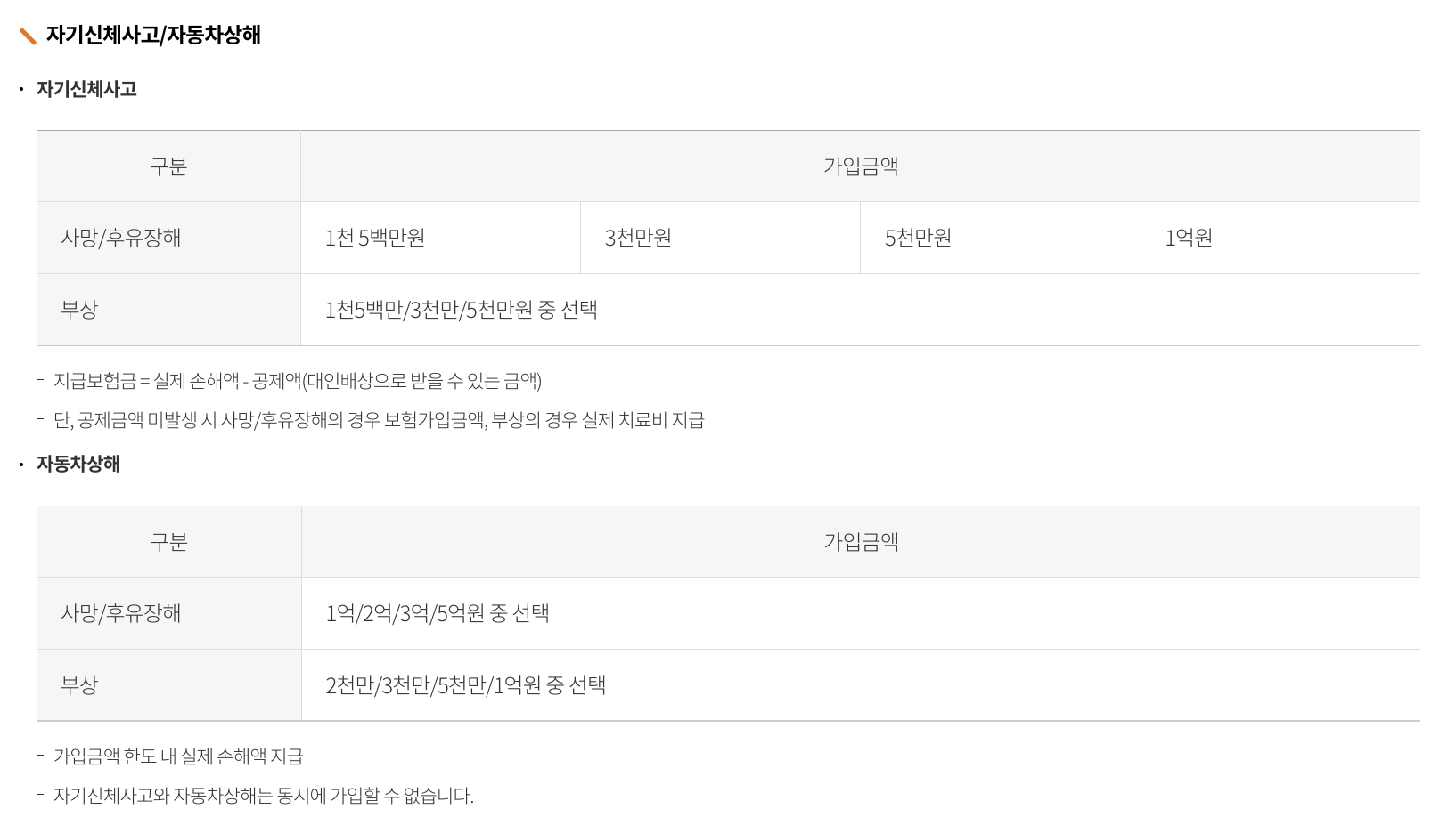 - 운전자 범위: 운전자 범위를 설정할 때는 실제 운전할 사람들을 모두 포함해야 합니다. 만약 지정된 운전자 외에 다른 사람이 운전하다 사고가 발생하면 보상을 받을 수 없습니다.