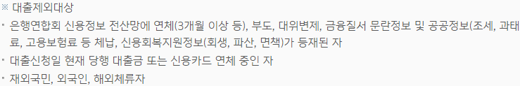 대출 제외 대상은 아래와 같습니다.
