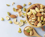 호두, 아몬드, 캐슈넛, 피스타치오 등 불포화지방산이 풍부한 견과류는 혈관벽의 탄력을 높이고, 혈중 지질 개선에 좋아요.
