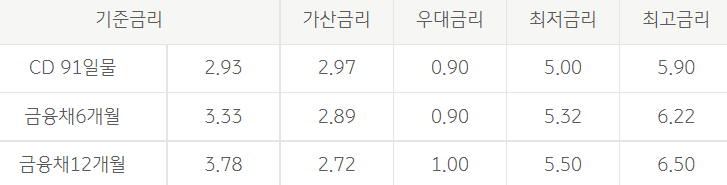대출금리는 위와 같으며, 우대금리 조건은 아래와 같습니다.