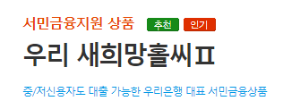 중/저신용자도 대출이 가능한 상품으로 글 하단에는 다른 은행들의 새희망홀씨 및 다른 유용한 정보에 대해 남겨두었으니 꼭 참고하시길 바랍니다.