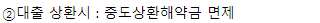 중도상환해약금이란 대출금을 중도에 상환하는 경우 고객이 부담하는 금액으로 이 금액은 면제됩니다.