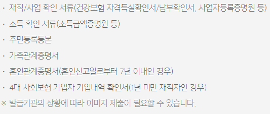 - 소득금액증명원 또는 근로(사업)소득원천징수영수증으로 소득확인이 가능한 분