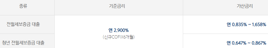 일반 전월세보증금 대출의 경우 연 3.735% ~ 4.558%