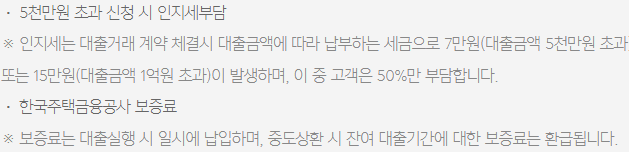 대출 기타 부대비용 및 유의사항