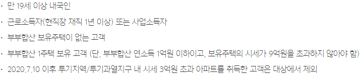 대출대상은 아래의 기준을 모두 충족하면 가능합니다.